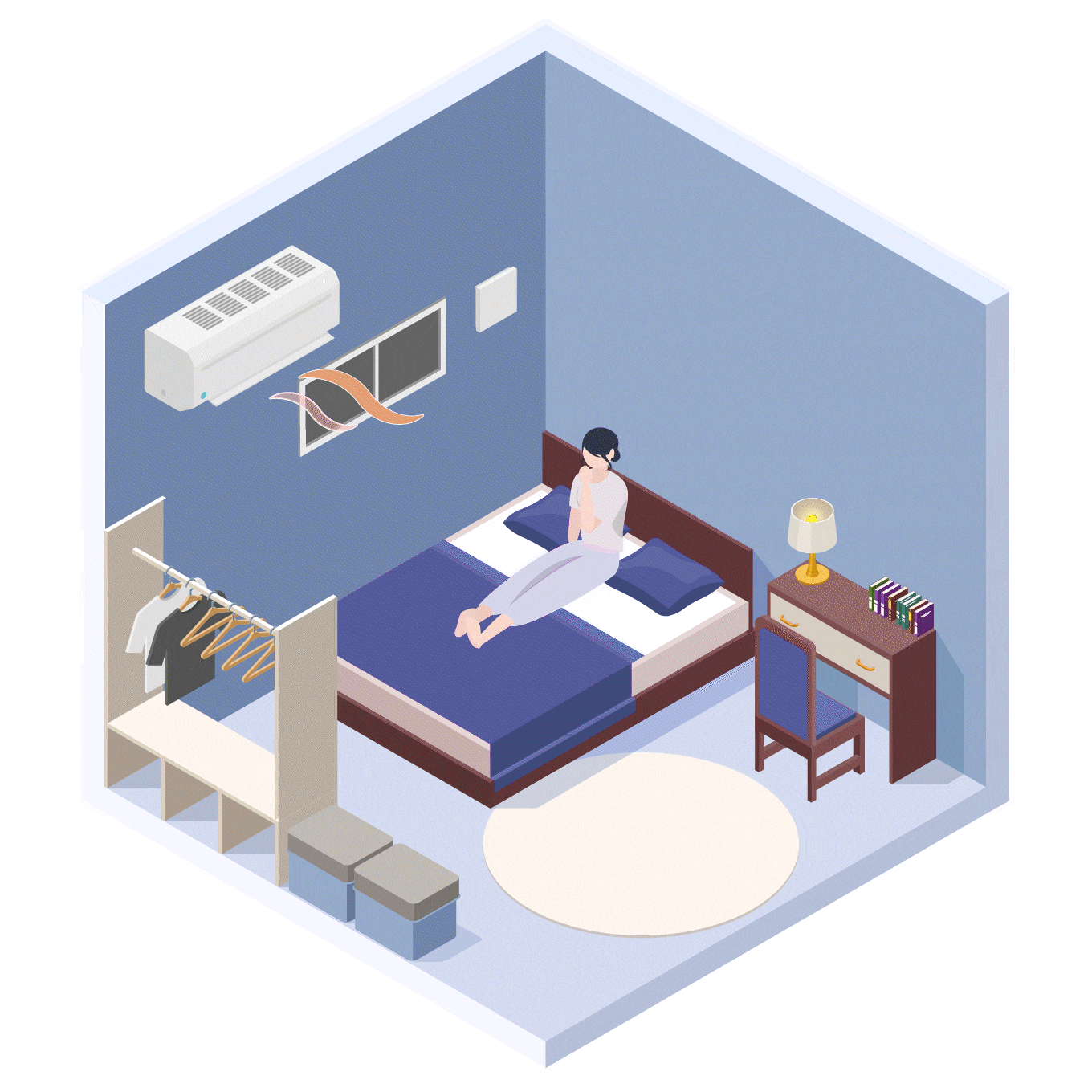 壁スイッチで「ON」にして運転開始後、4~5時間で自動停止し消し忘れを防止。